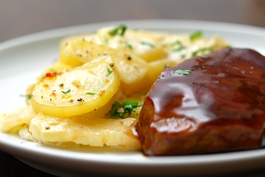 Dazu gabs bei mir Kartoffel-Apfel-Gratin.