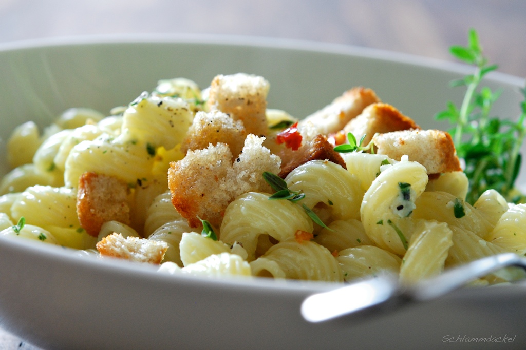 Eeeeewig hab ich nach nem Zitronenthymian gesucht. Letzte Woche hieß es in meinem Lieblingsblumenlädchen noch „neee, sowas haben wir leider nicht, höchstens mal den normalen“ und dann laufe ich da ein paar Tage später zufällig vorbei und was sehe ich? Genau, einen Zitronenthymian…. Kurz nach Ladenschluss bin ich noch schnell in den Laden reingesaust und hab ihn mitgenommen. Auf diesen tollen Kauf war ich gar nicht vorbereitet, aber probieren wollte ich natürlich schon direkt, also hab ich ein Rezept für Orecchiette mit Thymian-Pesto umgebaut. Ich hoffe das Pflänzchen gedeiht ähnlich gut wie der Sauerampfer, will nämlich noch ganz viel damit ausprobieren.